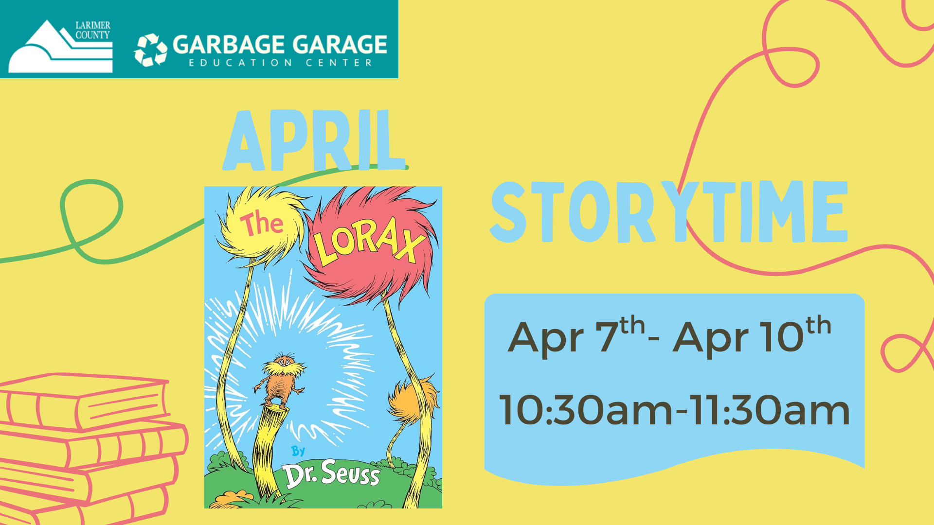 For April's Storytime sessions, we will revisit one of the most famous sustainability stories: Dr. Seuss's The Lorax! Let's learn all about the tale of the Lorax, and learn what it means to be sustainable. How can we take the themes from The Lorax and use them in our lives? How do reducing, reusing, and recycling help keep our Earth healthy and clean? We will explore all of this and more as we read and interact with the world of The Lorax. We will read our story, and then create a Lorax craft to take home. Join us for a fun-filled Storytime this April!